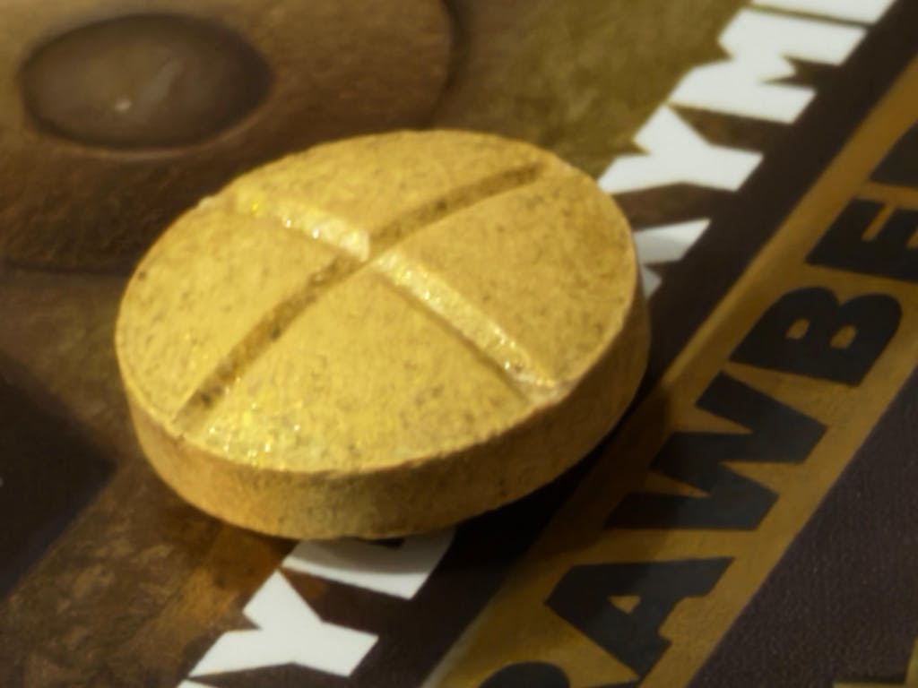 Beautiful golden color. It looks like a little gold bar with a shine. Very good flavor. Very good consistency. It’s not a hard break. It breaks up easy. The strawberry banana was a good flavor. I took one tablet in about 3040 minutes in very nice pain, relief, and relaxation overall very content and we’ll get again.