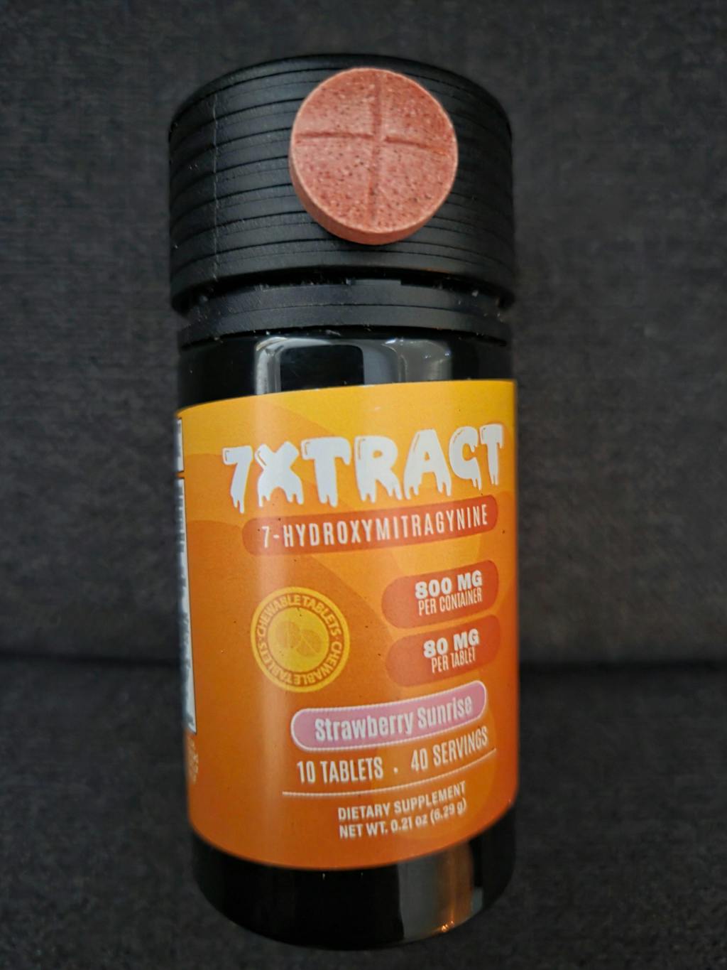 7XTRACT 7-Hydroxymitragynine Tablets (80mg each, 10ct) in Strawberry Sunrise flavor deliver a sweet, fruity burst with every serving. With 800mg total per pack, this option is crafted for those who enjoy both taste and convenience in their supplement choice.