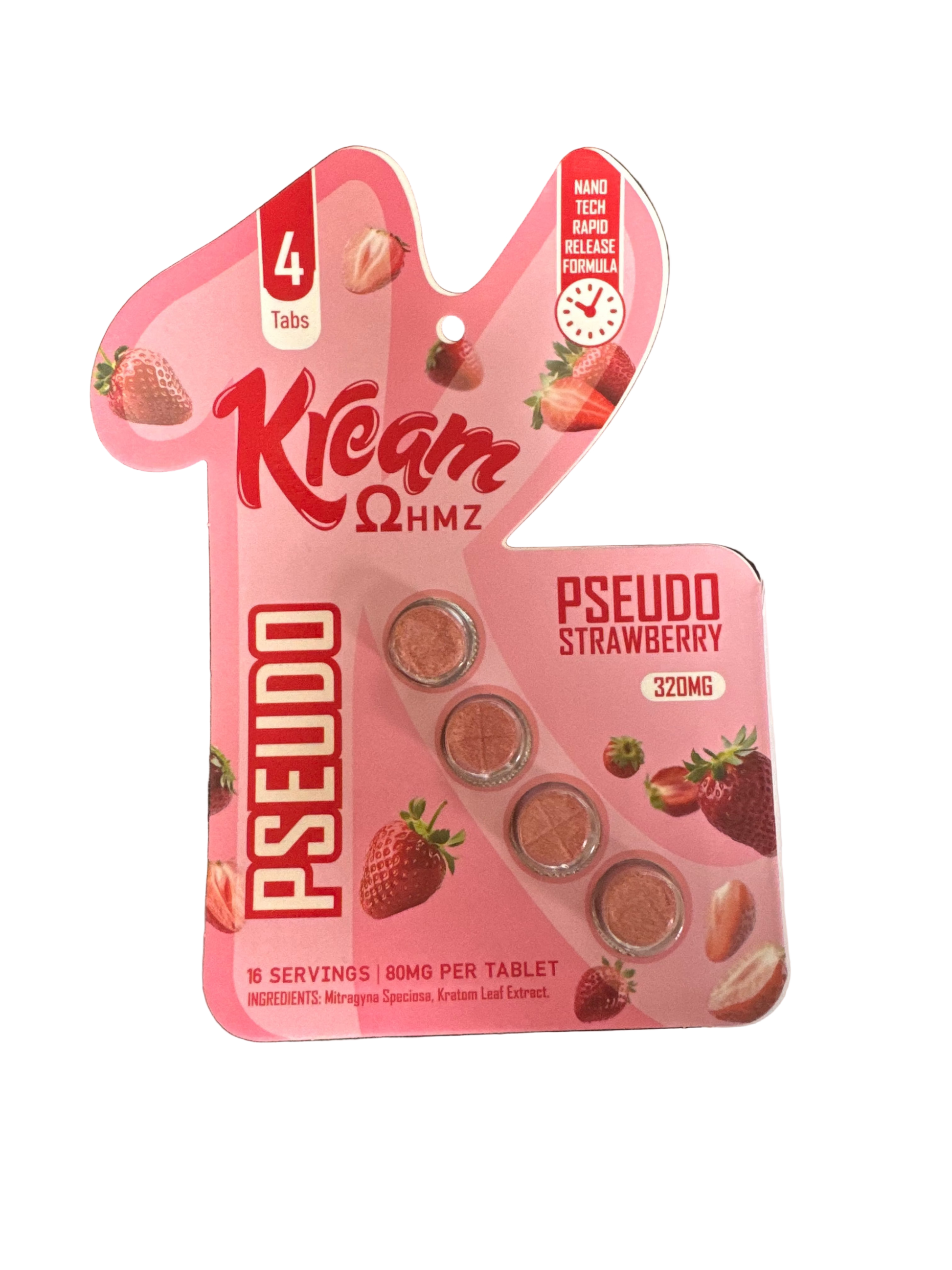 KREAM ΩHMZ PSEUDO Tabs — Strawberry deliver a smooth and flavorful way to enhance your energy, focus, and mood. Featuring a proprietary PSEUDO formula, each tablet is crafted to support mental clarity, motivation, and a balanced sense of well-being. The sweet, juicy Strawberry flavor makes every dose enjoyable, combining function with flavor. With 4 tablets per pack, it's a convenient solution for staying sharp and uplifted throughout your day.